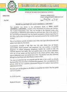 However, reacting to the news of the demise of the undergraduate and exonerating itself, the Management of Federal Polytechnic, Illaro debunked the claim that the negligence of the School Clinic led to the death of Abimbola.