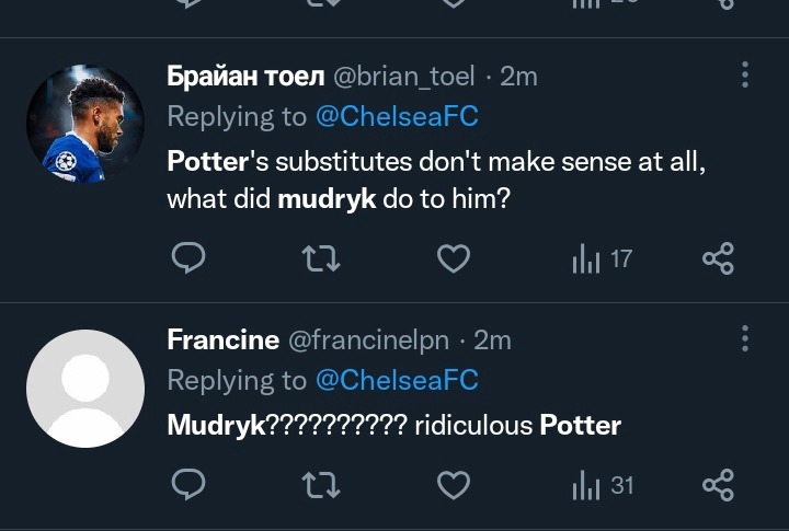 Against Dortmund, Chelsea sat deep in the latter stages of the game, and this indicates the pace of Mudryk would have been useful, but Graham Potter ignored the Ukrainian. For this reason, fans have begun to ask questions because Mudryk was signed for a large fee. Note that Christian Pulisic, who just returned from injury, was used ahead of Mudryk. So, some fans are worried about what could have caused the treatment the Ukrainian winger is getting right now. On the other hand, note that Mudryk didn’t play in Chelsea’s last win against Leeds United and was also a second-half substitute against Tottenham and Southampton.