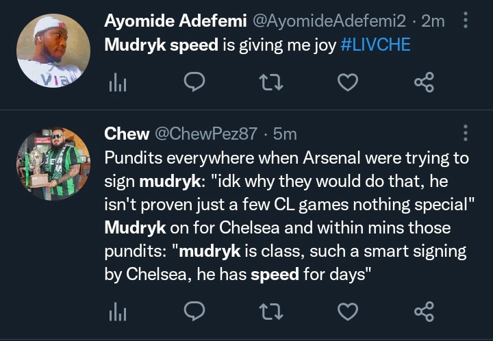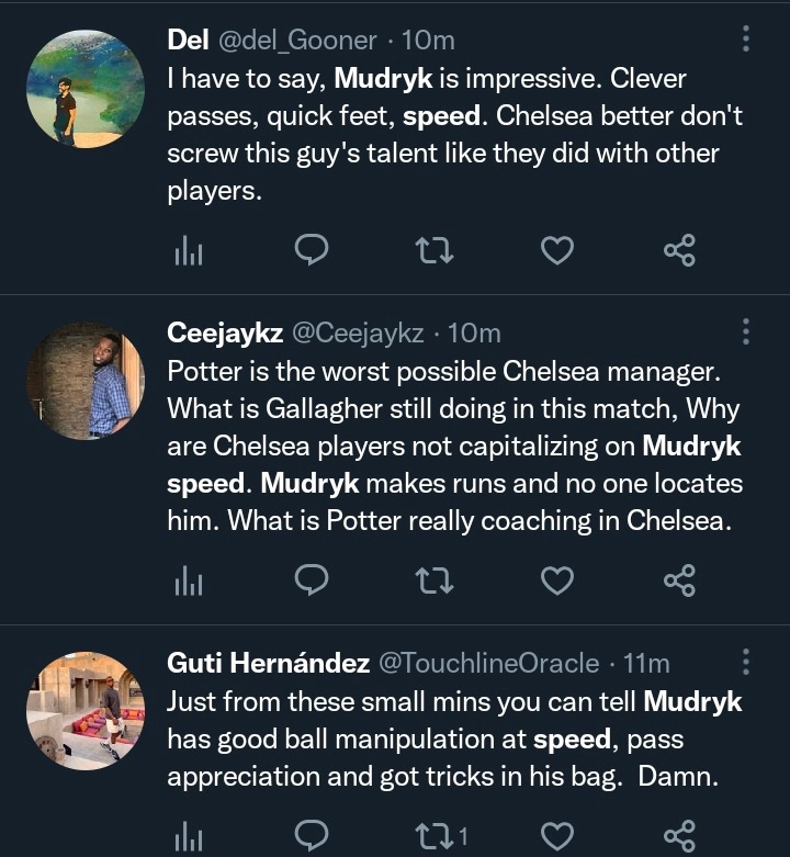 However, fans have been talking about how Nunez and Mudryk’s introduction to the game changed the tempo of the second half and the lack of quality in the final third, but this article will focus on what fans are saying about Mudryk after he made his debut for Chelsea.