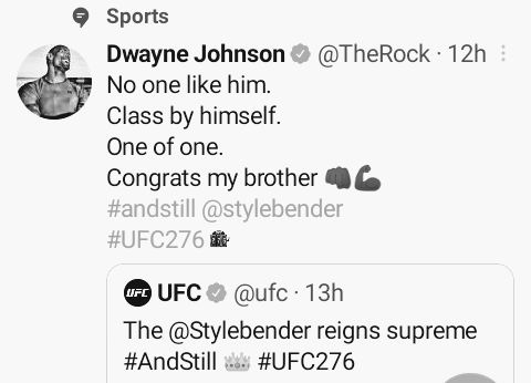 The Twitter post of Dwyane Johnson, it shows that the actor also acknowledges what Israel Adesanya does in the fighting sport, and also keeps his remarkable UFC reputation intact.