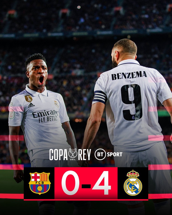 Karim Benzema silenced the raucous Spotify Camp Nou crowd tonight as Real Madrid cruised to the final of the Spanish Copa Del Rey in style at the home of their bitter rivals, Barcelona.